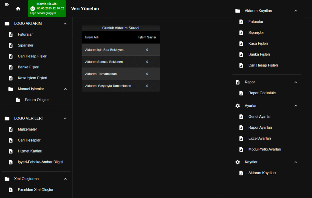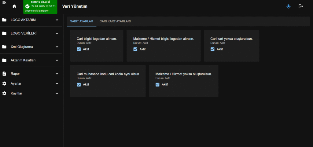 İşte tam da bu noktada geliştirdiğimiz web tabanlı veri yönetim sistemimiz, hem LOGO GO kullanıcıları için XML tabanlı aktarım desteği, hem de LOGO TIGER kullanıcıları için güçlü Object Servis entegrasyonu ile devreye giriyor!